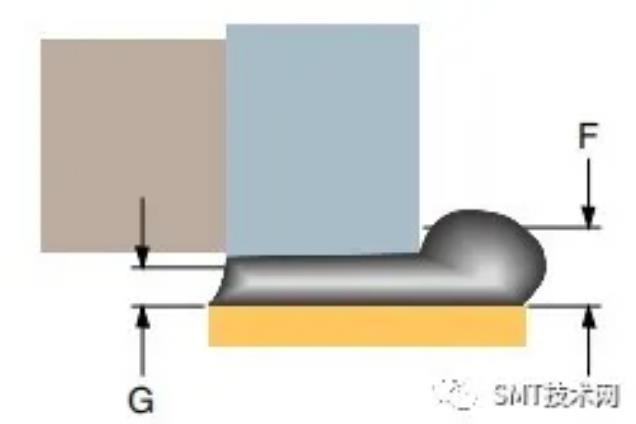 不良:最小跟部填充高度(F)小于焊料厚度(G)加連接側(cè)的引線厚度(T)