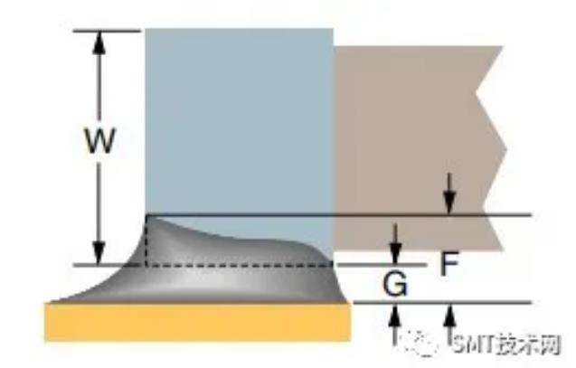 可接受:最小跟部填充高度(F)等于焊料厚度(G)加連接側(cè)的引線厚度(T)