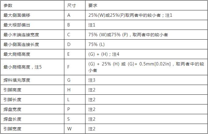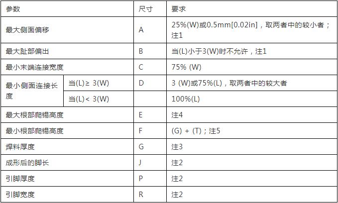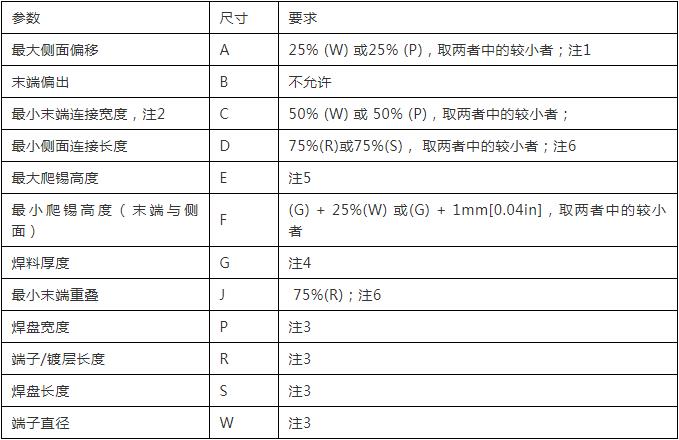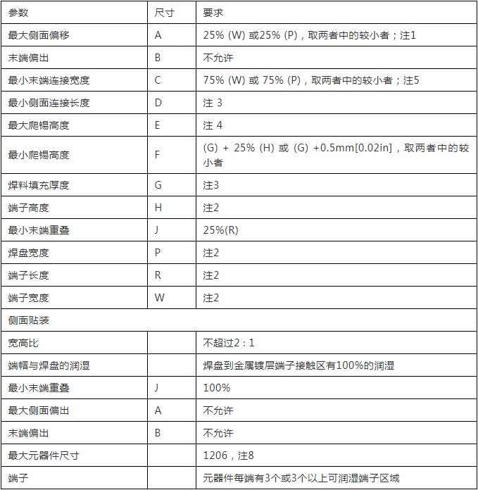 注4:最大填充可偏出焊盤和/或延伸至端帽金屬鍍層的頂部或側(cè)面;但焊料不能接觸到元器件的頂部或側(cè)面。