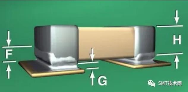 目標:最小爬錫高度(F)為焊料厚度(G)加元器件端帽直徑(W)的25%或焊料厚度(G)加1mm[0.04in],取兩者中的較小者