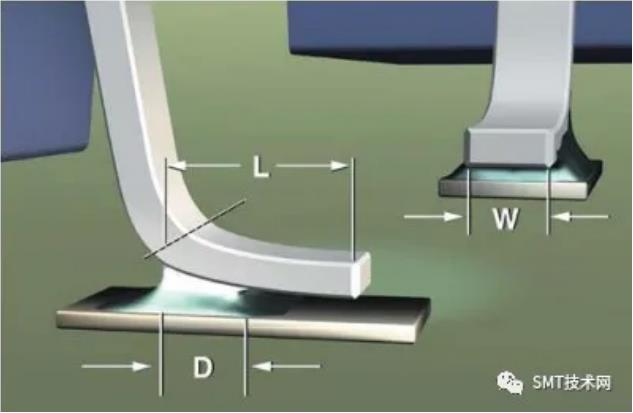 當腳長(L)小于3倍引線寬度(W),最小側(cè)面連接長度(D)小于100%(L)