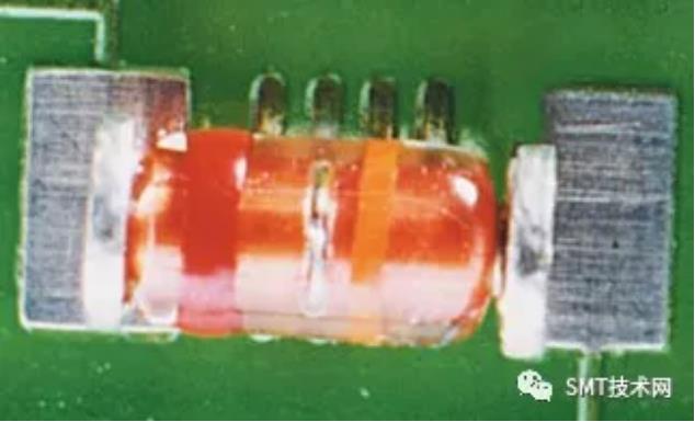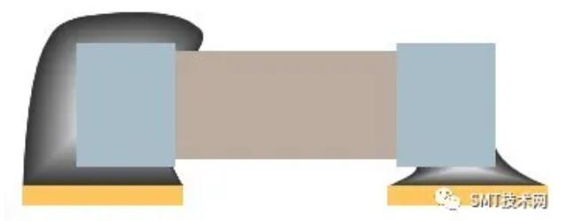 不良:元器件端子和焊盤之間小于25%的重疊接觸