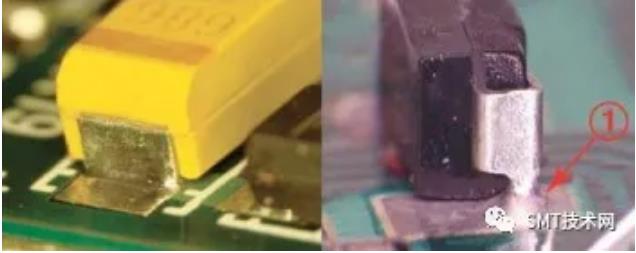 右圖也呈現(xiàn)了元器件側(cè)立妨礙末端連接寬度的形成